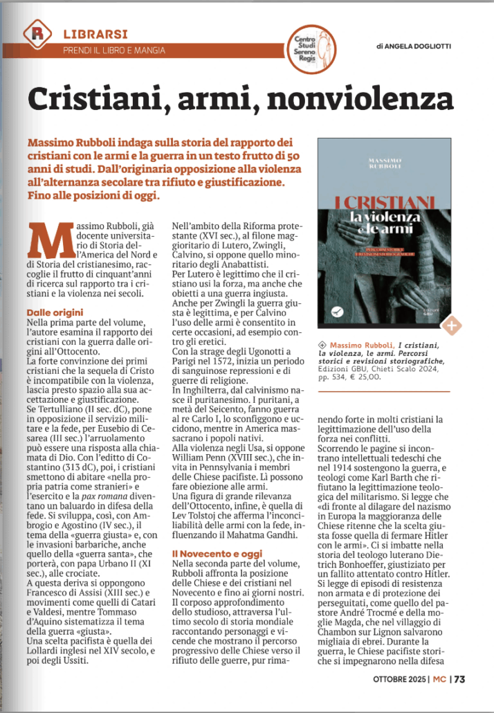 Come si sono comportati i cristiani nei confronti della violenza, delle armi e della guerra? Le hanno accettate o rifiutate? L’autore cerca di rispondere a queste domande guidandoci in un percorso che va dai primi secoli fino ai giorni nostri, delineando gli sviluppi delle posizioni dei cristiani e delle chiese. Idee, eventi e persone si intrecciano in una narrazione che, evitando miti e luoghi comuni, induce a riflettere su quali responsabilità abbiano avuto i cristiani nel percorso che ha portato l’umanità sulla soglia del baratro della catastrofe nucleare.